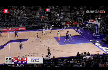爵士弧顶连续横向传导,贝利接球后假动作点起对手后突破,吸引协防后助攻队友完成上篮。
