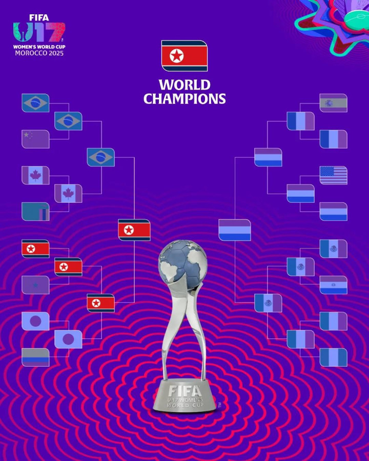 撰稿/寒冰 北京时间11月9日凌晨,朝鲜U17女足3比0大胜荷兰U17女足,成功卫冕U17女足世界杯冠军。这是朝鲜U17女足自2008年首次参加U17女足世界杯以来,第4次获得冠军,而且也是成绩最出色的一次。朝鲜U17女足在摩洛哥一路7战全胜夺冠,得失球高达25比3。U17女足世界杯史上,只有2014年冠军日本U17女足,取得了一样的全胜战绩和得失球优势(23比1),但当时日本U17女足仅踢了6场比赛。